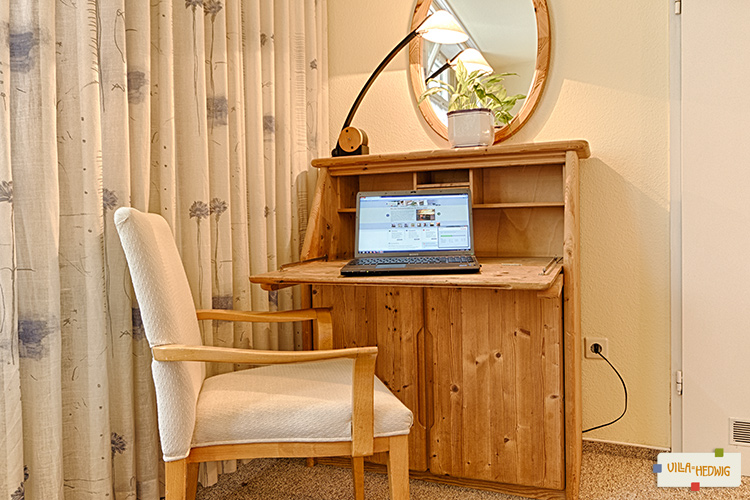 Im gemütlich eingerichteten Schlafzimmer werden Naturmatratzen verwendet und die geschmackvolle Einrichtung mit Möbeln aus Massivholz ist Garant für einen behaglichen Aufenthalt.