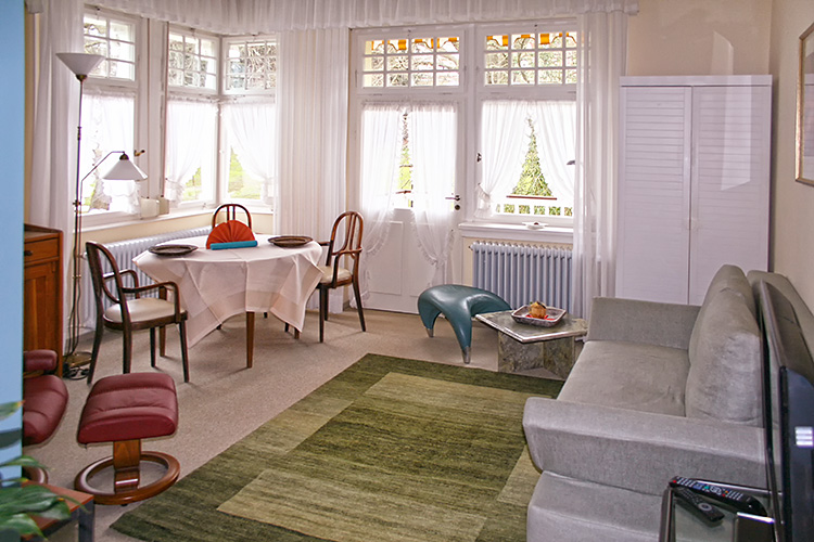 Einen größerer Umbau hat jetzt das Appartement Jaspers erlebt. Gerade die Gestaltung des Wohnzimmers hatte uns bislang etwas Sorgen bereitet. Einige Gäste fanden, dass zwei Sofas den Raum zu sehr dominieren würden. Gesagt getan – ein Sofa ist jetzt verschwunden, dafür gibt es einen superbequemen Lese- und Fernsehsessel. Bei der Gelegenheit ist auch die Sitzecke von der Wand in die Mitte des Raumes „gewandert“ – und außerdem gönnten wir den Wänden des Appartements einen neuen Anstrich.